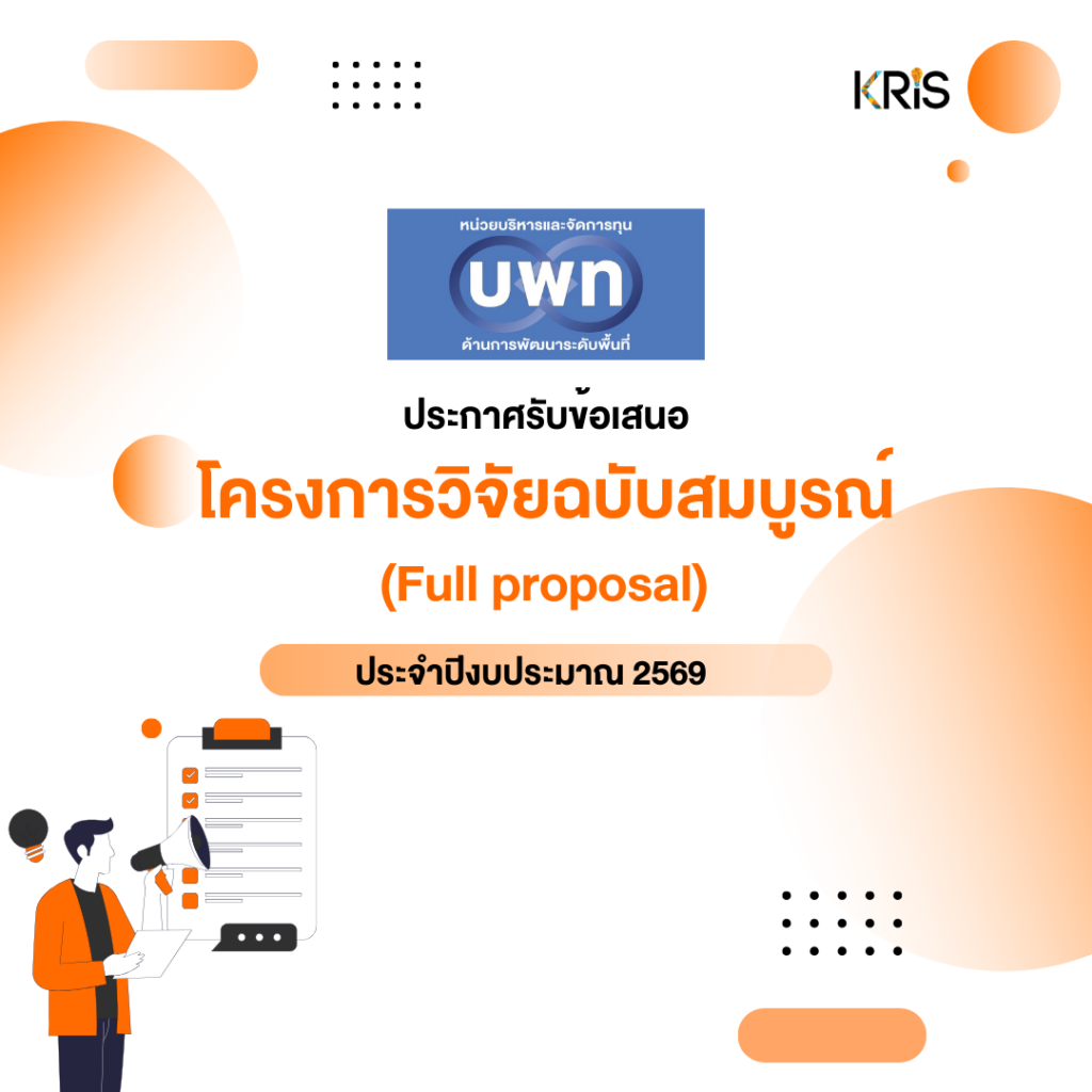 บพท.ประกาศรับข้อเสนอโครงการวิจัยฉบับสมบูรณ์ (Full proposal) ประจำปีงบประมาณ 2569 🎉